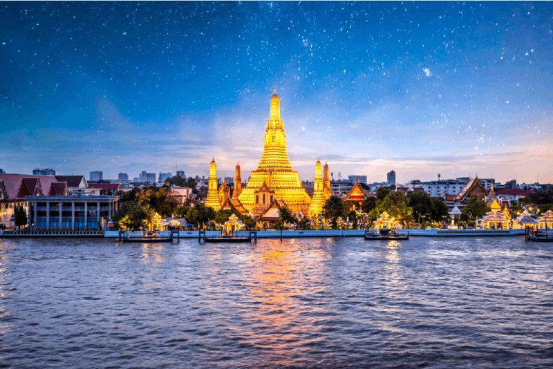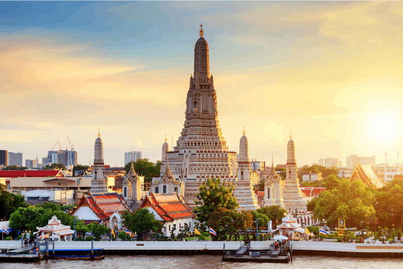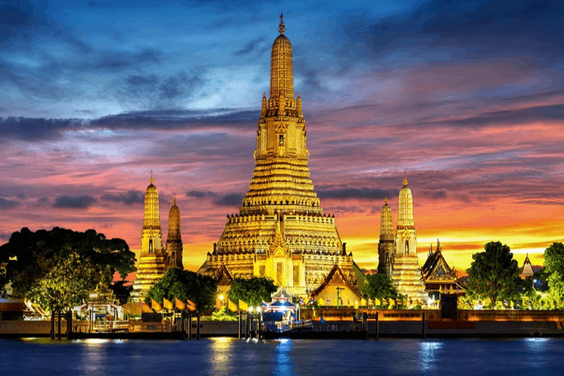 Chùa Wat Arun (hay còn gọi là chùa Bình Minh), ngôi chùa nổi tiếng nổi tiếng và nằm ở Phía tây bờ sông Chao Phraya - tại đây quý khách tham quan chiêm bái và cầu những điều may mắn tốt lành cho bản thân và gia đình.