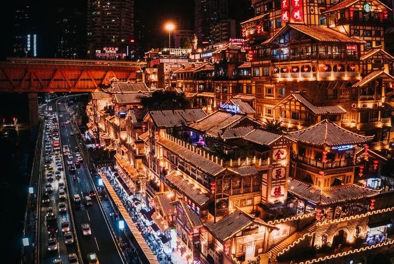 Phố Cổ Hồng Nhai Động – Trùng Khánh, nổi bật nhờ khu phố cổ 11 tầng lầu với mái ngói rêu phong, hoa văn chạm trổ, nằm ở khu trung tâm thương mại thành phố Trùng Khánh, bên bờ sông Dương Tử, là điểm bờ sông giao nhau của hai con sông Trường Giang và sông Gia Linh. Điểm đến này còn đặc biệt nổi tiếng vì sự lung linh huyền ảo như bối cảnh của bộ phim “Vùng đất linh hồn”. Về đêm, Hồng Nhai Động được thắp sáng bởi những ánh đèn ấm áp, soi bóng xuống mặt nước giống như một khu chợ nổi giữa các toà nhà chót vót. Quý khách có thể chiêm ngưỡng khung cảnh đẹp và lãng mạn này từ nhiều góc độ.