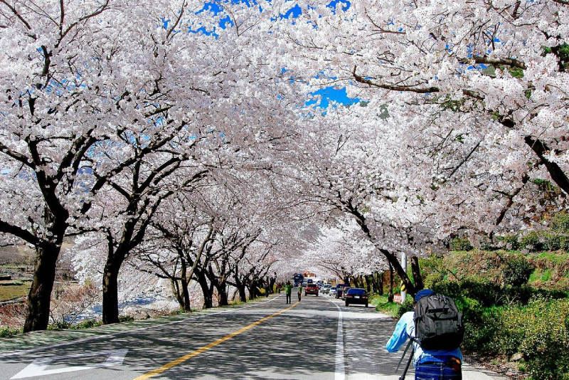 Thưởng ngoạn và chụp ảnh trên con đường hoa anh đào nổi tiếng nhất Seoul, Công viên Yeouido đường Yunjungno phía sau tòa nhà Quốc Hội-điểm ngắm hoa anh đòa nổi tiếng nhất ở Seoul, được viền bằng 1.400 cây hoa anh đào nở đầy những bông hoa màu hồng nhạt.