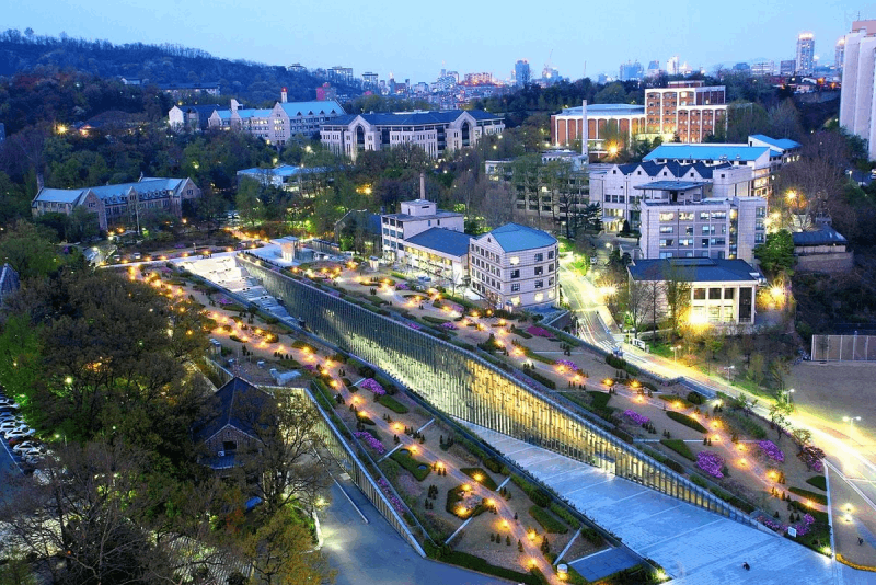 Đại Học Nữ Ewha - Không chỉ là cơ sở giáo dục hàng đầu Hàn Quốc, Đại học Nữ sinh Ewha còn là địa điểm nổi tiếng dành cho khách du lịch bởi kiến trúc độc đáo. Trường có không gian xanh rộng lớn cùng những tòa nhà kiến trúc nổi bật, trong đó tiêu biểu nhất là khu phức hợp Ewha Campus - công trình có khuôn viên ngầm lớn nhất Hàn Quốc. Trường đang là sự lựa chọn số 1 dành cho các bạn nữ muốn theo vì nơi đây từng sản sinh ra nhân tài nữ chính trị gia của đất nước Hàn Quốc và thế giới.