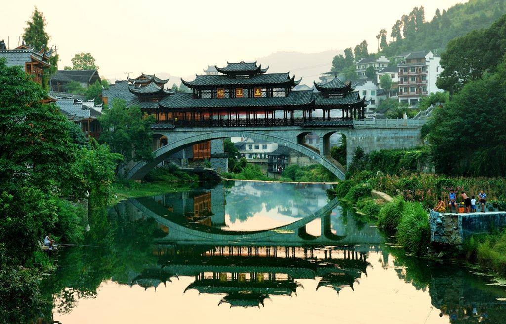 Phù Dung Trấn một thị trấn cổ đã có hơn 2000 năm lịch sử, một thị trấn người Thổ Gia được mệnh danh là thị trấn treo trên thác nước.