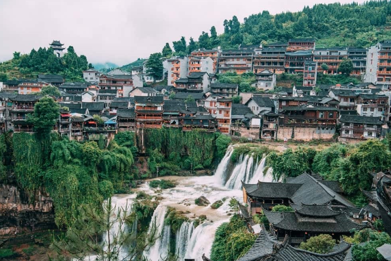Trưa: Ăn trưa tại nhà hàng. sau đó lên xe khởi hành đi Phù Dung - một thị trấn cổ đã có hơn 2000 năm lịch sử, một thị trấn người Thổ Gia được mệnh danh là thị trấn treo trên thác nước.